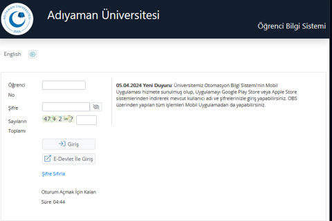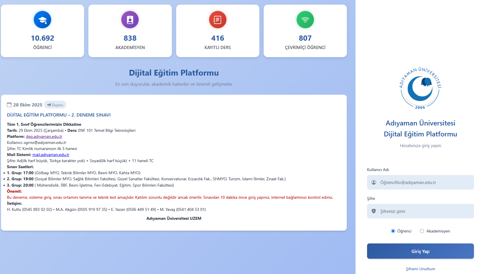 Adıyaman Üniversitesi Öğrenci Bilgi Sistemi, öğrencilerin akademik süreçlerini yönetmeleri için tasarlanmış merkezi bir dijital platformdur. Bu güvenli sistem üzerinden ders kaydı yapabilir, notlarınızı ve transkriptinizi görüntüleyebilir, ders programı ve sınav tarihleri gibi tüm akademik bilgilere anında ulaşabilirsiniz. Kullanıcı dostu arayüzü ile eğitim hayatınızı kolaylaştırmak için her an hizmetinizdedir.